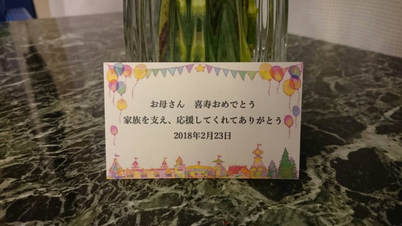 東京では、僕以外の兄弟でお祝いをしたようだ