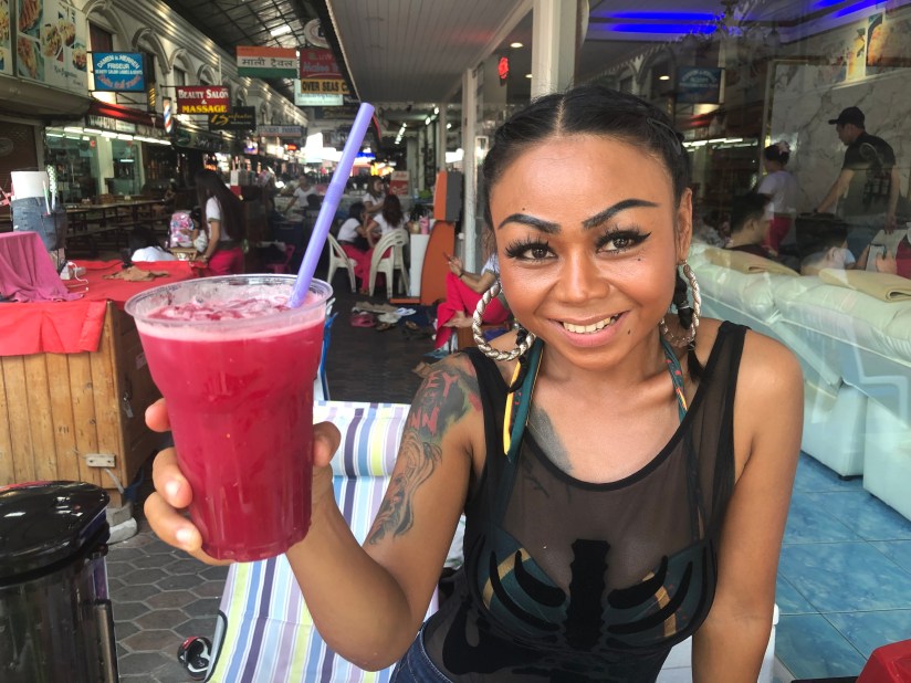 ふと見ると店までの道中に野菜ジュース屋台があるではないか!