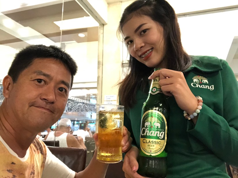 飲む気は無かったがChang Beerのキャンギャルの押し売りに負けて2ショット。