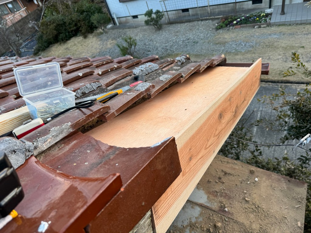 続いて今日は、屋根修理、瓦が飛んでいるところが2カ所と割れてるのが数カ所。