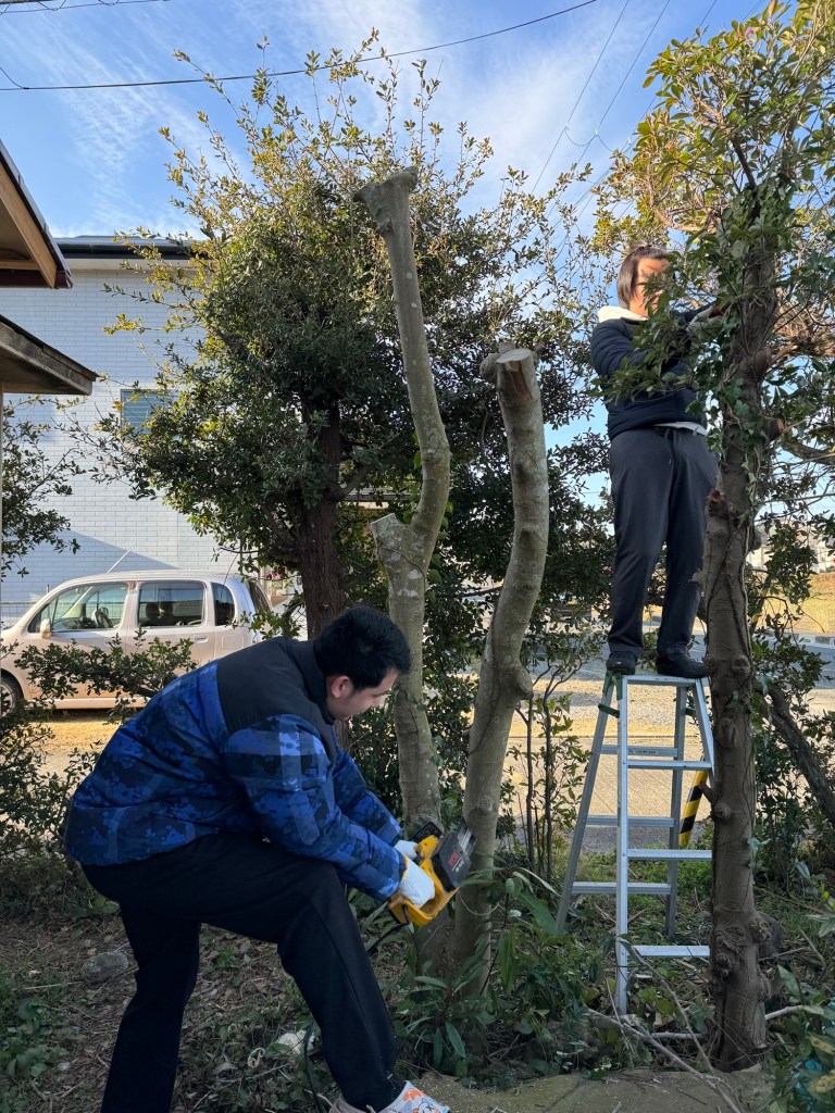 今日は、大阪からの頼もしい助っ人に庭の木を伐採してもらった。荒れ放題だった庭がだいぶすっきりとしてきた。