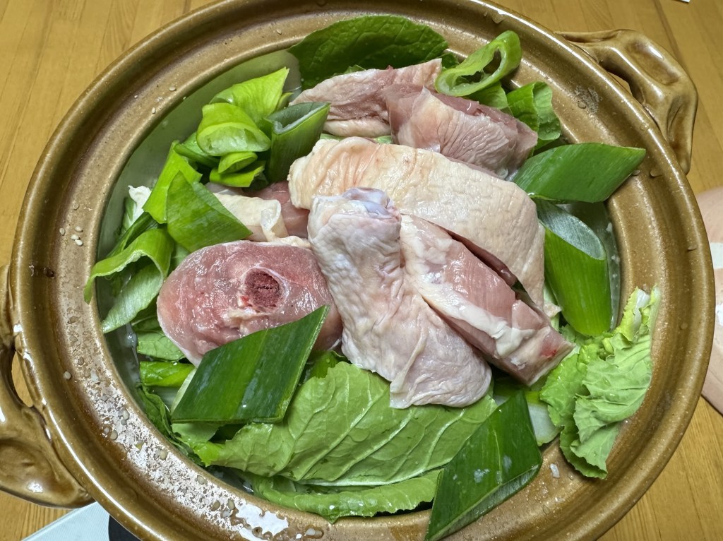 骨付きもも肉をぶつ切りでぶち込む。うまい!極寒のこの時期は、鍋に限るぜ!