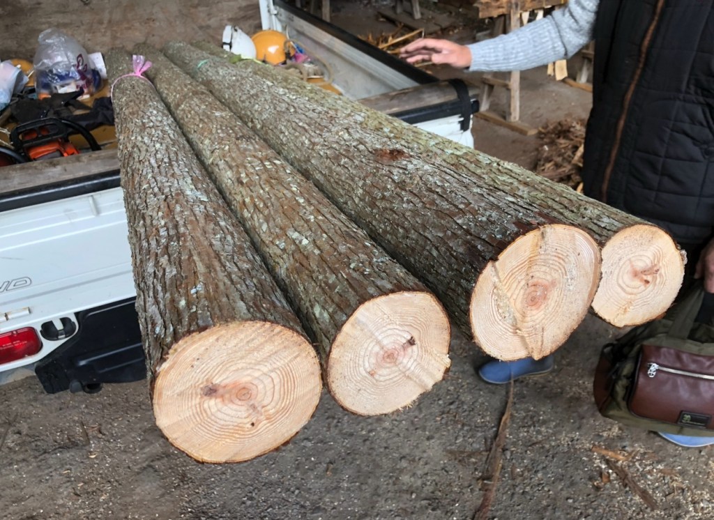 この床柱は、今は亡きY.N氏の紹介で、5年くらい前に京都の北山杉を専門に扱っている中西林業さんに、木こり体験をお願いして私自ら伐採、製材したものを納屋で寝かせていたもの。やっと出番がきて嬉しい。