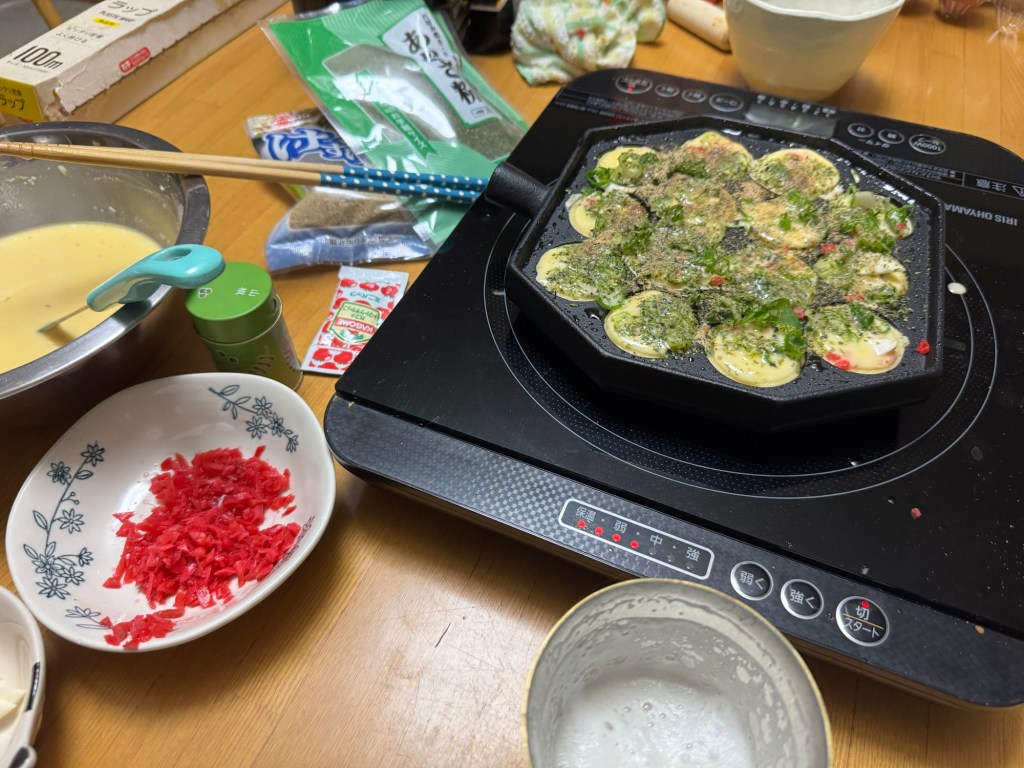 たこ焼きもひっくり返し力が退化しないようにたまには、やらねば、。