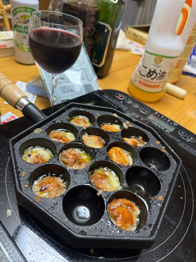 昨夜は、先日の引越しお手伝いの戦利品のたこ焼きプレートを使ってたこ焼き。たこ焼きは、焼き台が大事、最近出回る電気のたこ焼き機も試したが焼きが甘く、使い物にならず、素人には、焦げ付かないという利点はあるが、1回使ってお蔵入り。今回のは、南部鉄器のしっかりした鋳物である。IHでできるというのでやってみたが、これは、使えるぞ!さすが南部鉄器さん!