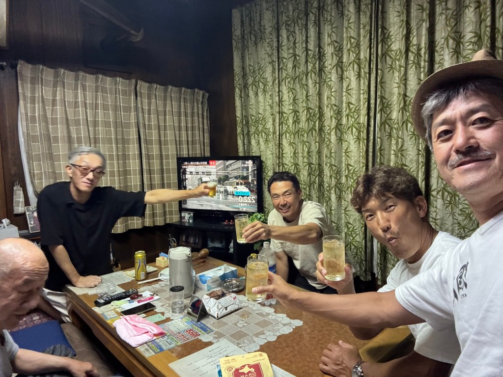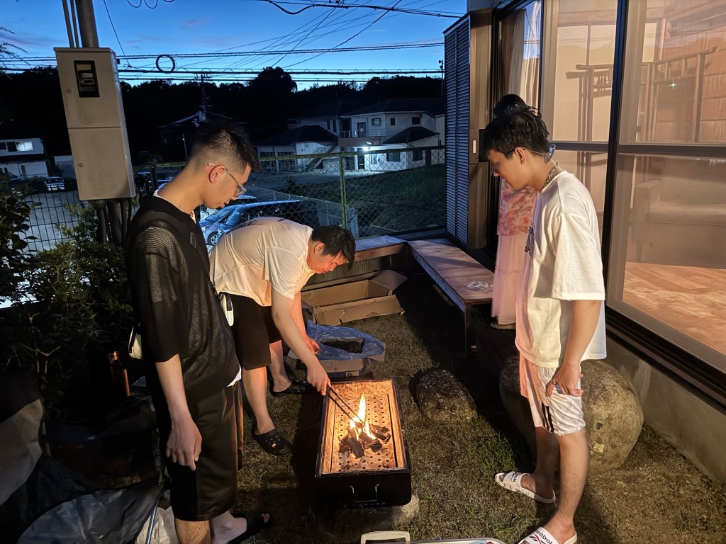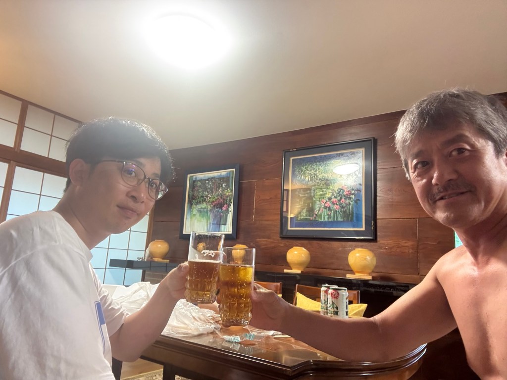 BBQに誘われた事もあり、BBQ設備の点検も兼ねて、今宵は、風光乃邸宅に泊まることにする。BBQが始まるまでの晩酌で近隣あいさつで知り合った東京からの移住組のKOUTAさんに声をかけて乾杯。