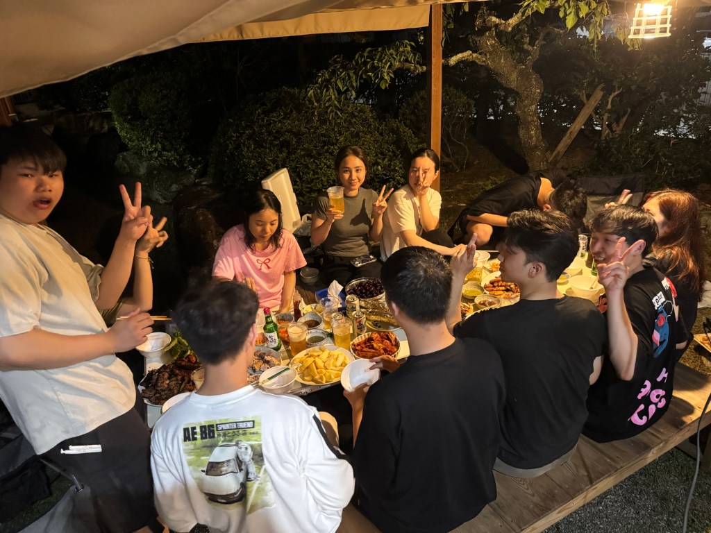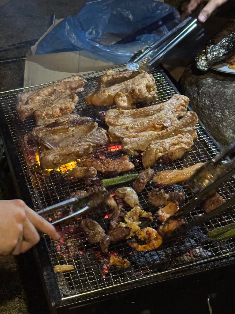焼き終わったところで皆で揃って乾杯。日本スタイルは、BBQ奉行なる者が焼きに徹して皆に、どやどや!と振る舞うスタイルが普通だが、お国変わればBBQスタイルも変わる。焼きたてでないのは、どうかと思うが実に民主的なスタイルで、良いかも。日本の政治も政治家奉行に任さず、皆でやるスタイルがよいかもな!BBQスタイルは、政治に似てるかも!