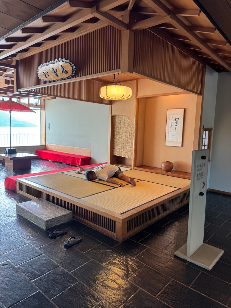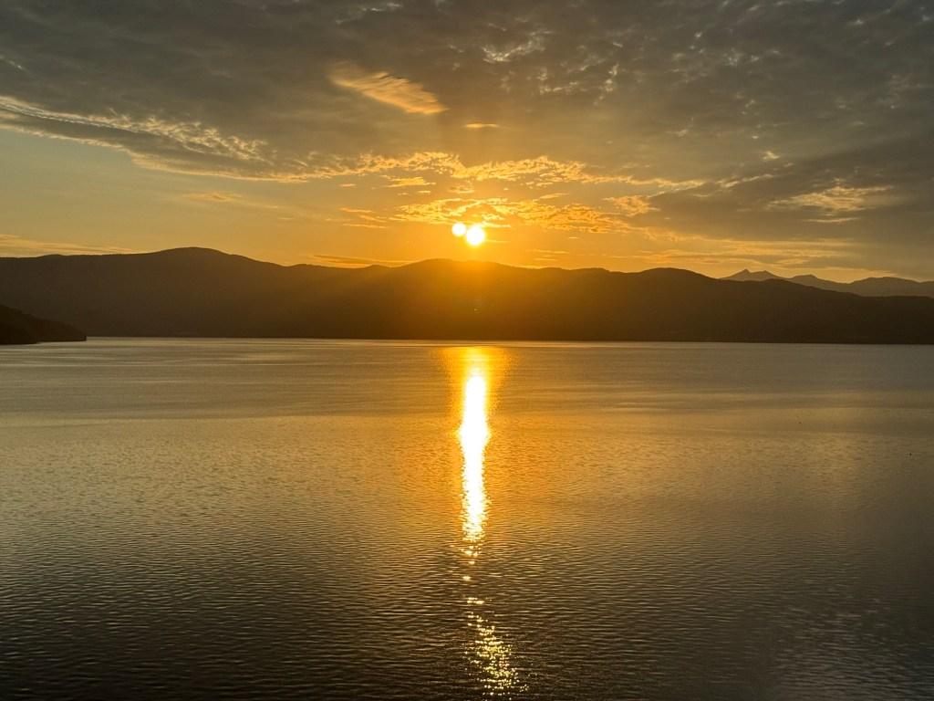 ビールとワインを飲んだので、酔い覚ましに温泉に入りながら、日の入りを待つ。