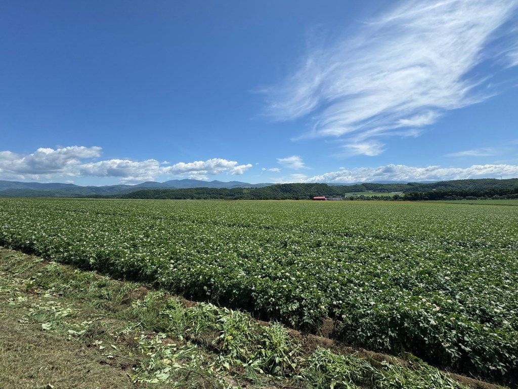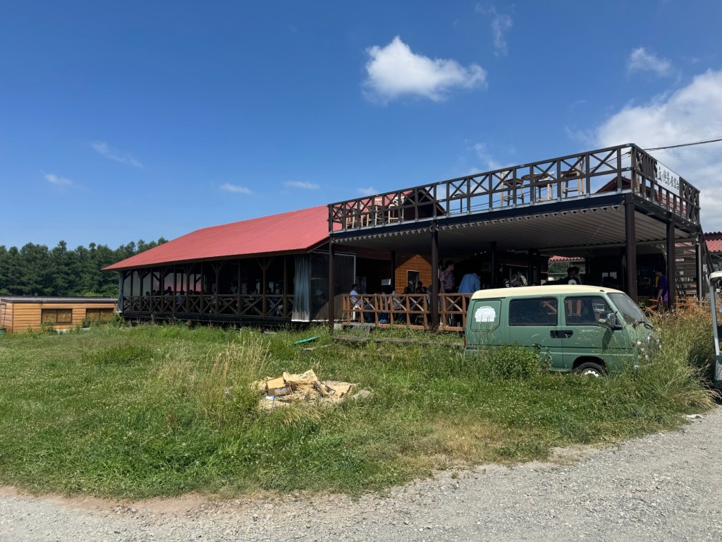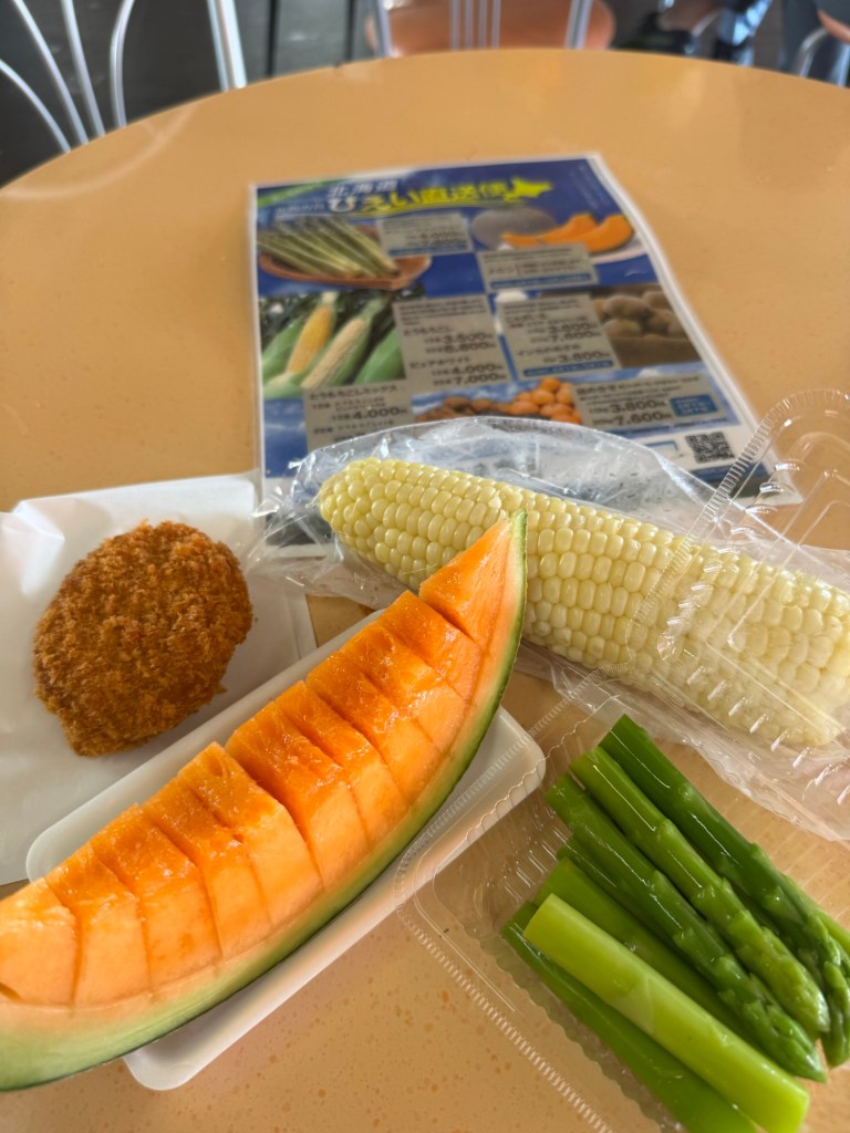 お任せドライブは、風景が美しい2箇所を周り、かんのファームの北海道うまいもんで朝メシがてらの買い食い。