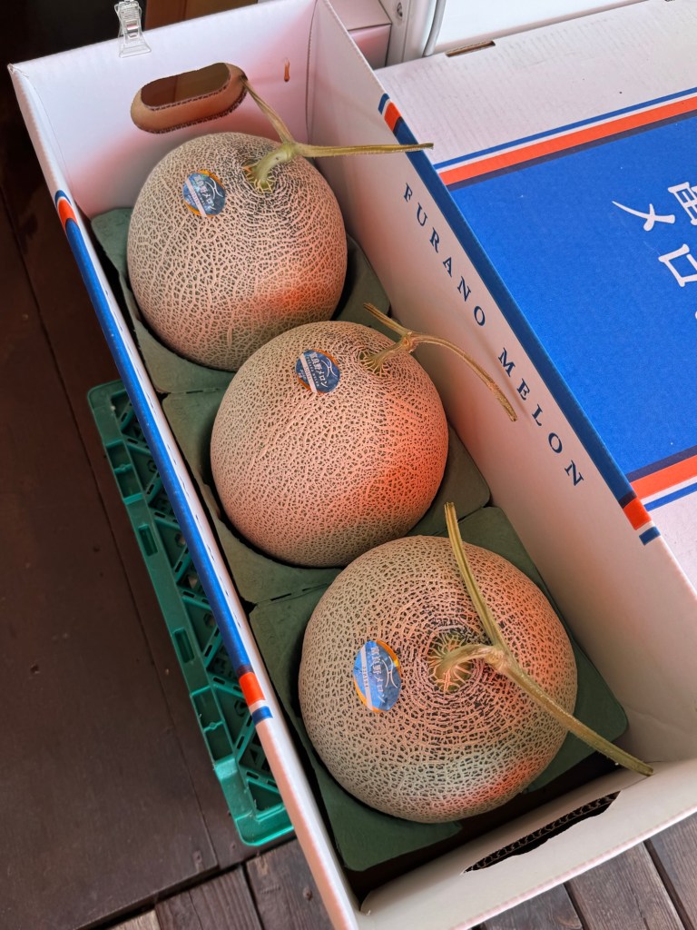 夕張メインが終わり、富良野メロンなるものるが旬に来ているらしく。3玉買ってお土産にする。