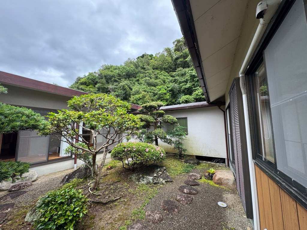 平家と2階建の2棟が建っており渡り廊下で繋がっている。庭が立派で手入れに手間がかかりそう。