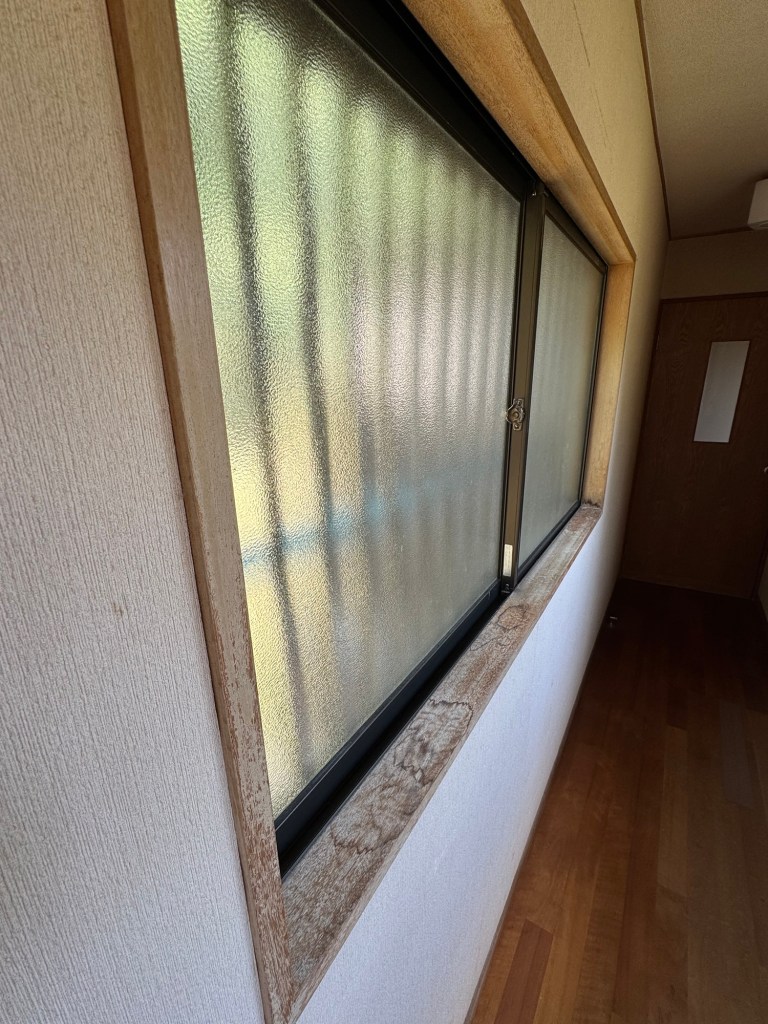 経年劣化で汚れが目立つ窓枠のメンテナンス。クロスを張り替え新品になるので窓枠もきれいにしておかねば、