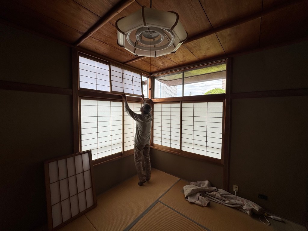 破れていた障子もいつもの建具屋さんがすぐに張り替えて持ってきてくれた。