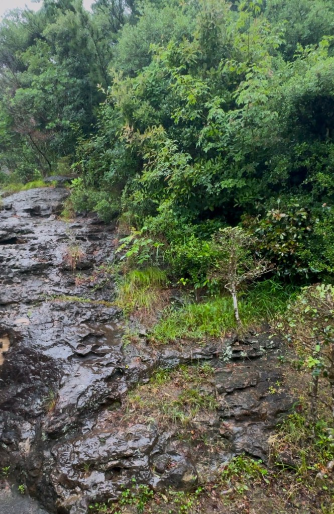 雨が降っていたが、裏側の窓から見える岩肌にしたたる岩清水がとてもよい。雨もまた良し。