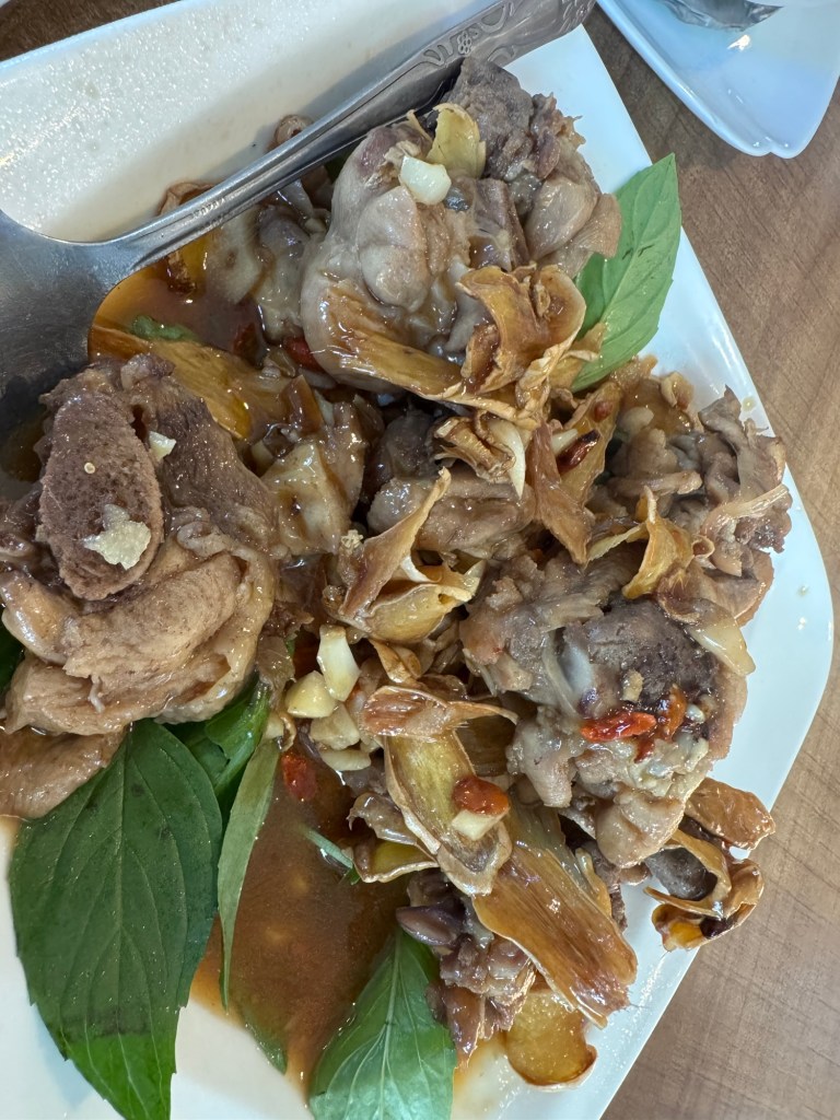 後者は、肉は、厚切りで生姜が効いたタレなんで臭みを全く感じない。一般受けするのは、こちらだろう。