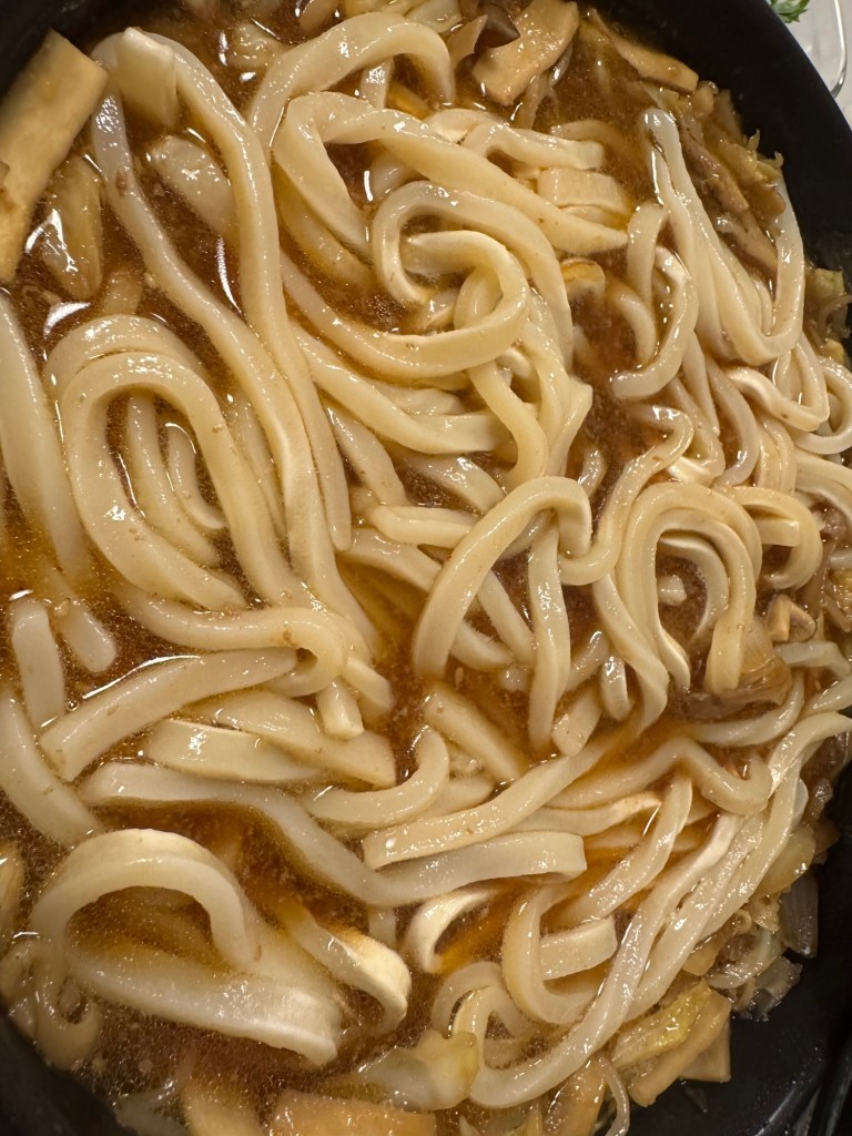 最後は、二つのタレをミックスしてコシのある太うどん。これは、鉄板のうまさ。