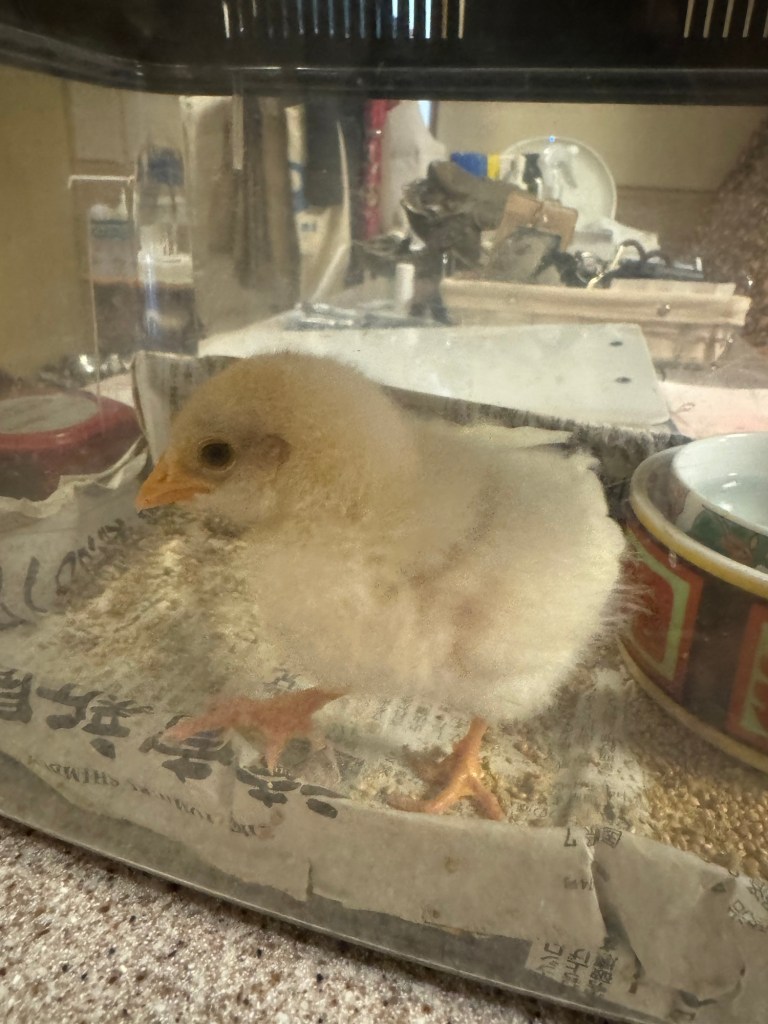 田万里家さんは、自分達でも孵化させてると聞いていたのでダメ元で連絡してみると、3羽孵化したが、1羽死んで2羽だけ、おまけに保育園から嫁いだ親鳥達は、我が子を見る前にイタチにやられて全滅したという。