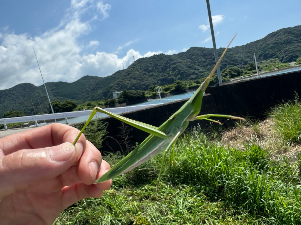 初夏にはまだ小さかったバッタがかなり巨大化していたので思わずキャッチして撮影。