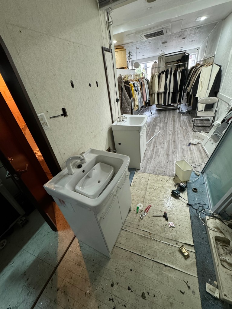 タイミング良く大阪の賃貸物件の店子が、シャワーユニット2台、洗面台ユニット2台、トイレ1つを外してほしいという希望があった。まだ新しい設備なので、それらを移設するために、今日は、取り外し工事を行った。