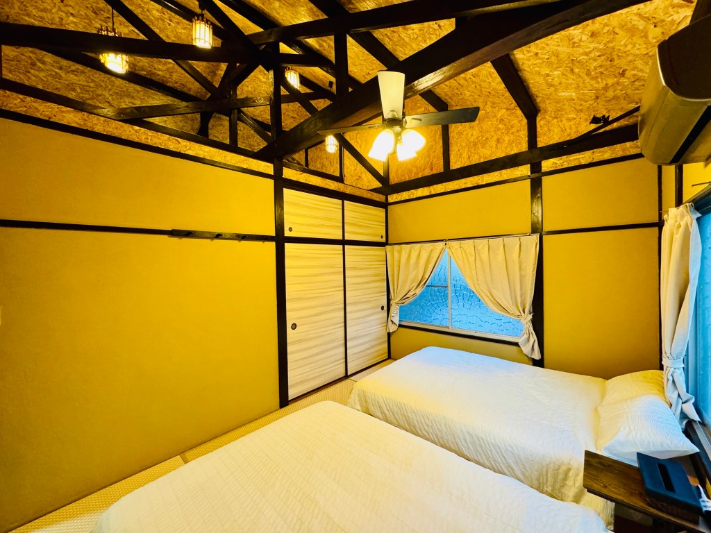 屋根裏、床下を調べた結果、雨漏り、白アリの程度を見て、購入を決断、実際に現場作業に取り掛かった日数は、約60日で、民泊としての商品化ができた!