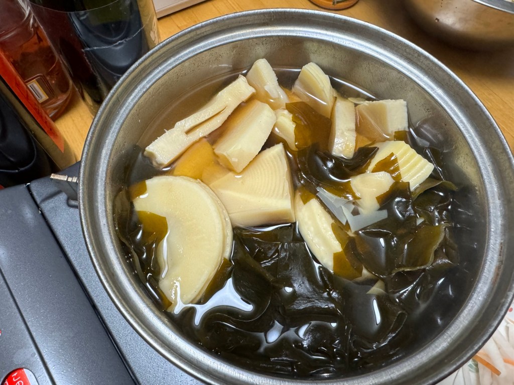 今夜は、いただいた釣り天然鯛と春の生わかめの骨蒸しで一献、やり切った感に浸るとする。