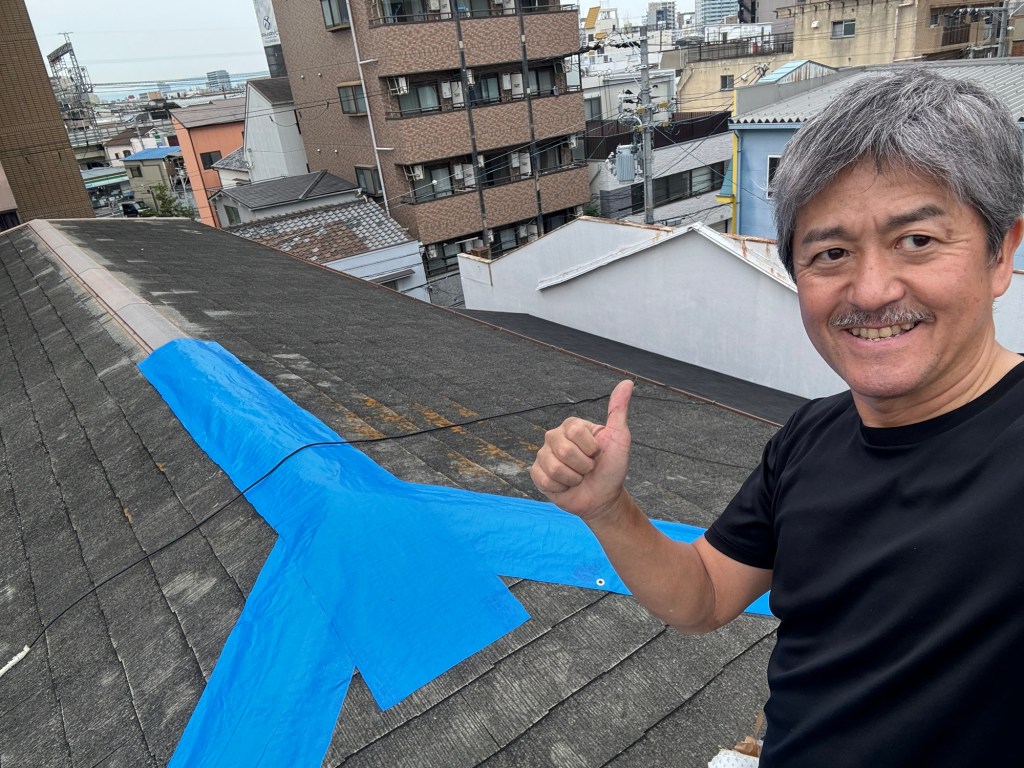 剥がれた板金部分にブルーシートを巻くだけの僕にとっては、簡単な作業だか、これだけをしてくれる業者はなかなかいない。