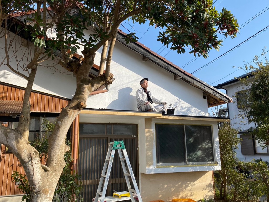 昼からは、ゆっくり休もうと思ったが明日から雨予報だから、外装の破風だけでもと、ペンキ屋に、