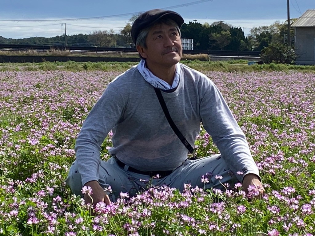お昼休憩の合間に春が連れてきたレンゲ畑でしばし休憩。