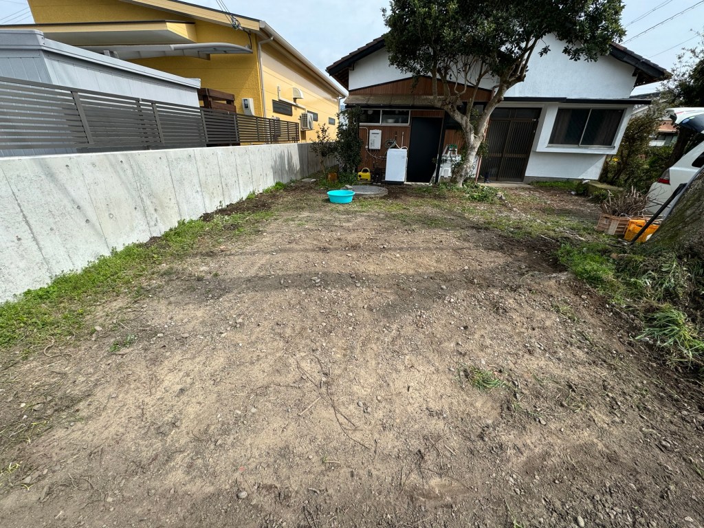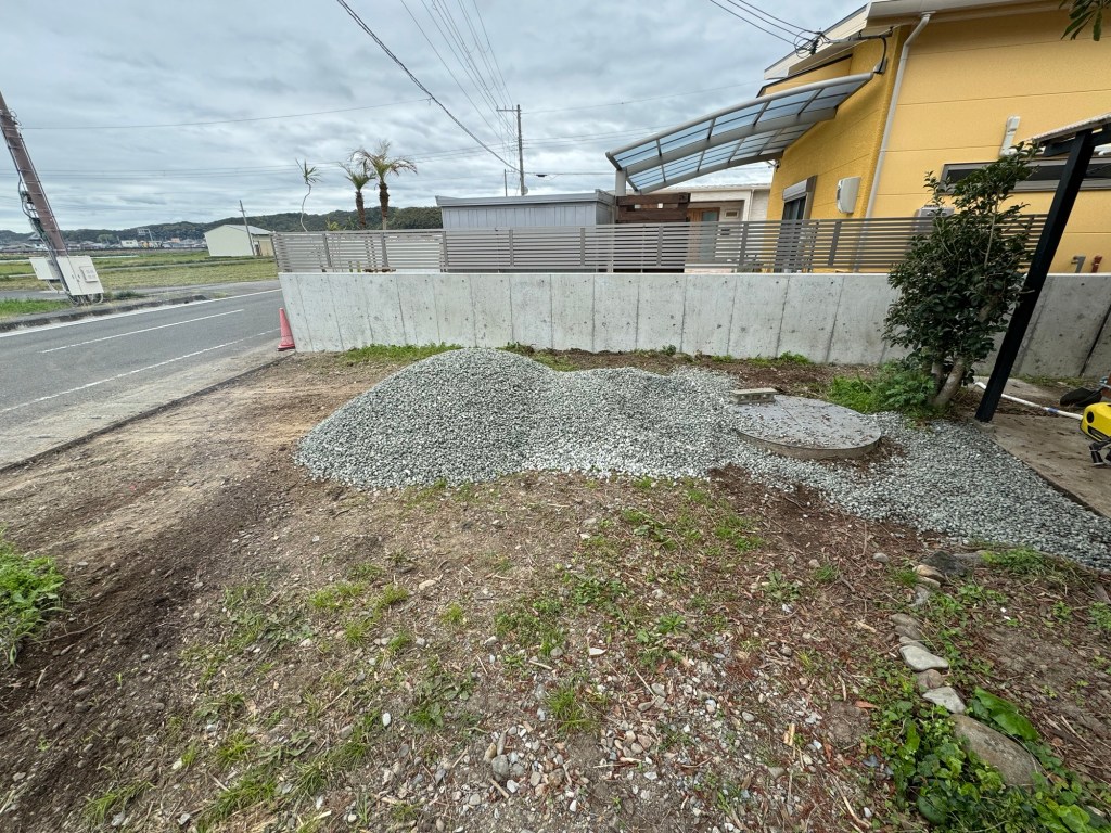 なんとか砕石を入れるところまでならすことができた。この作業は、まあまあ腰にくる、帰り際に車の中でハムストリングが攣った。意外とケツ筋を使うようだ。