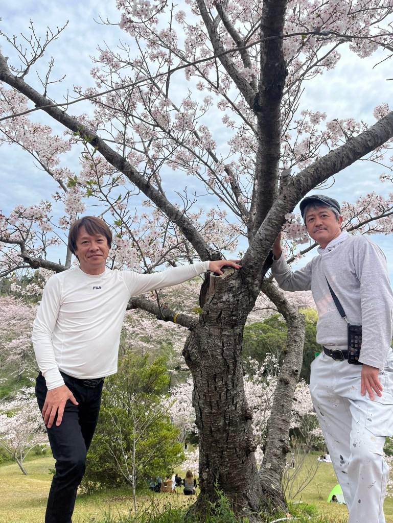 庭に石を引く作業を手伝ってもらい、白浜商工会主催の商工祭を見学がてら屋台めしを買い込み、平草原公園へ花見に出かけた。