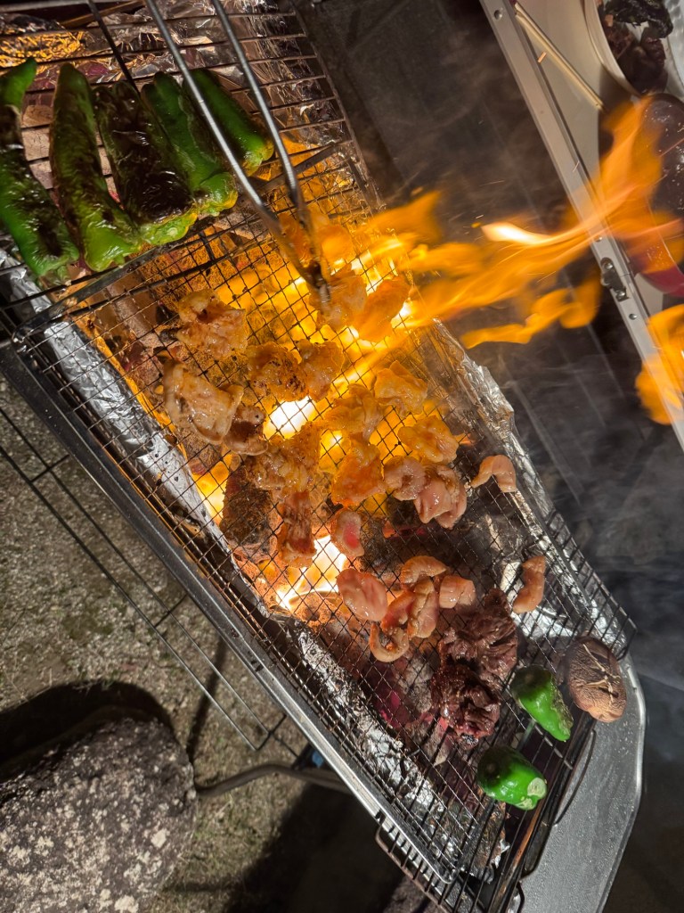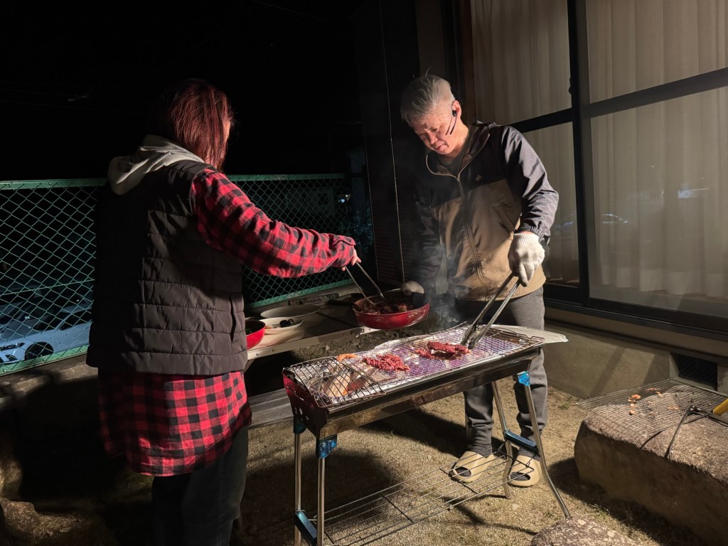 スタッフ2名の焼肉奉行大活躍で、次々と焼かれる。なんだかんだの飛び入り参加で14名になる。