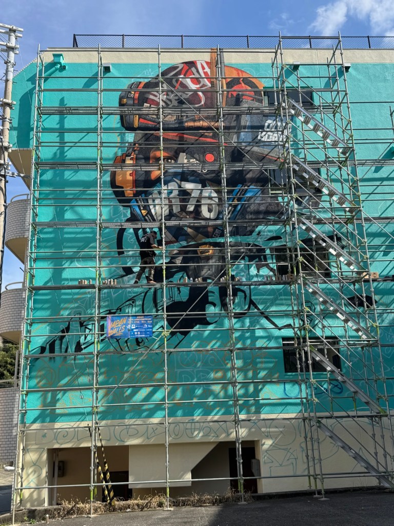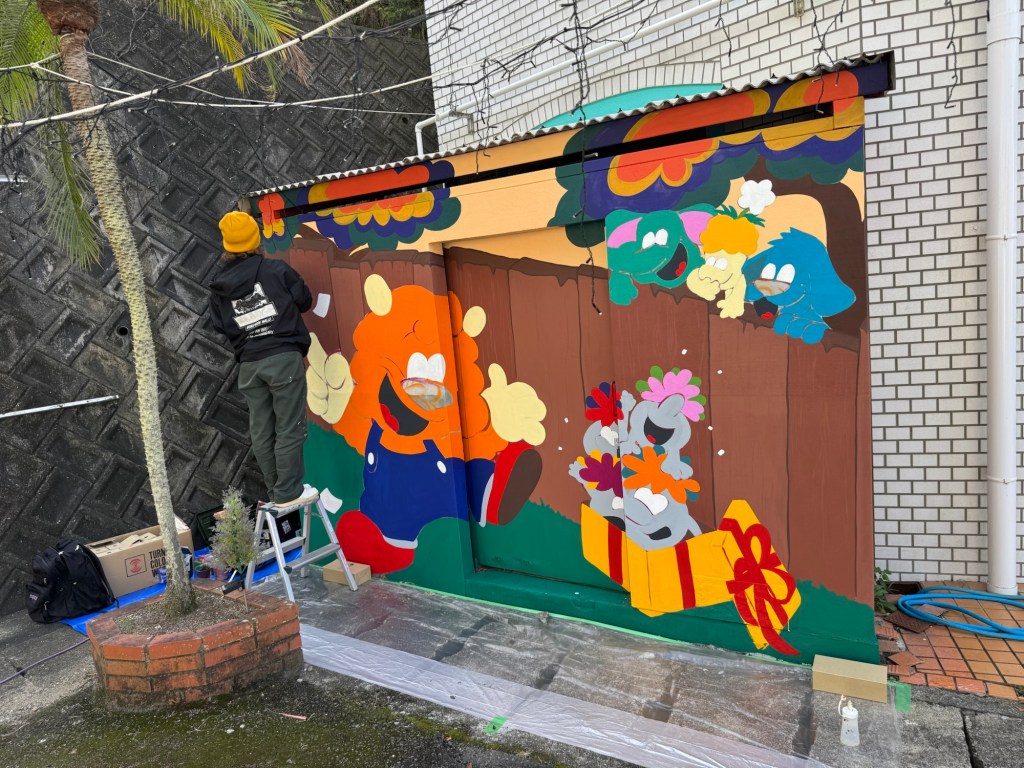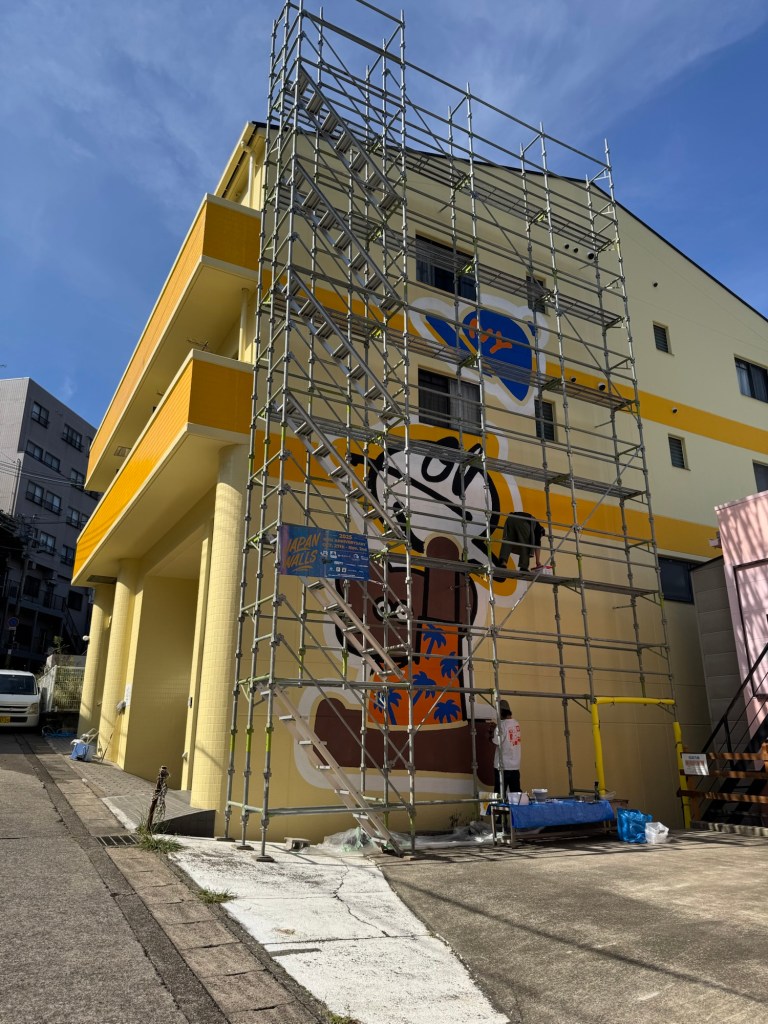 うちの施設の隣りだけかと思ったが、なんと白浜のあちこちで、この1週間、白浜の壁が大変身。