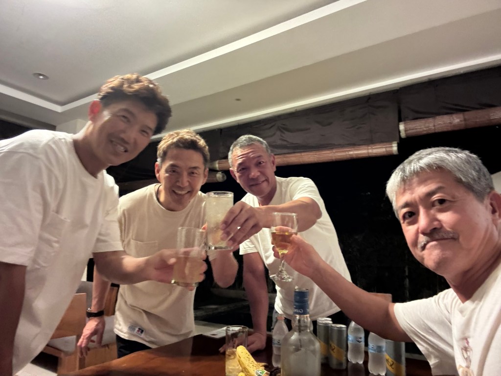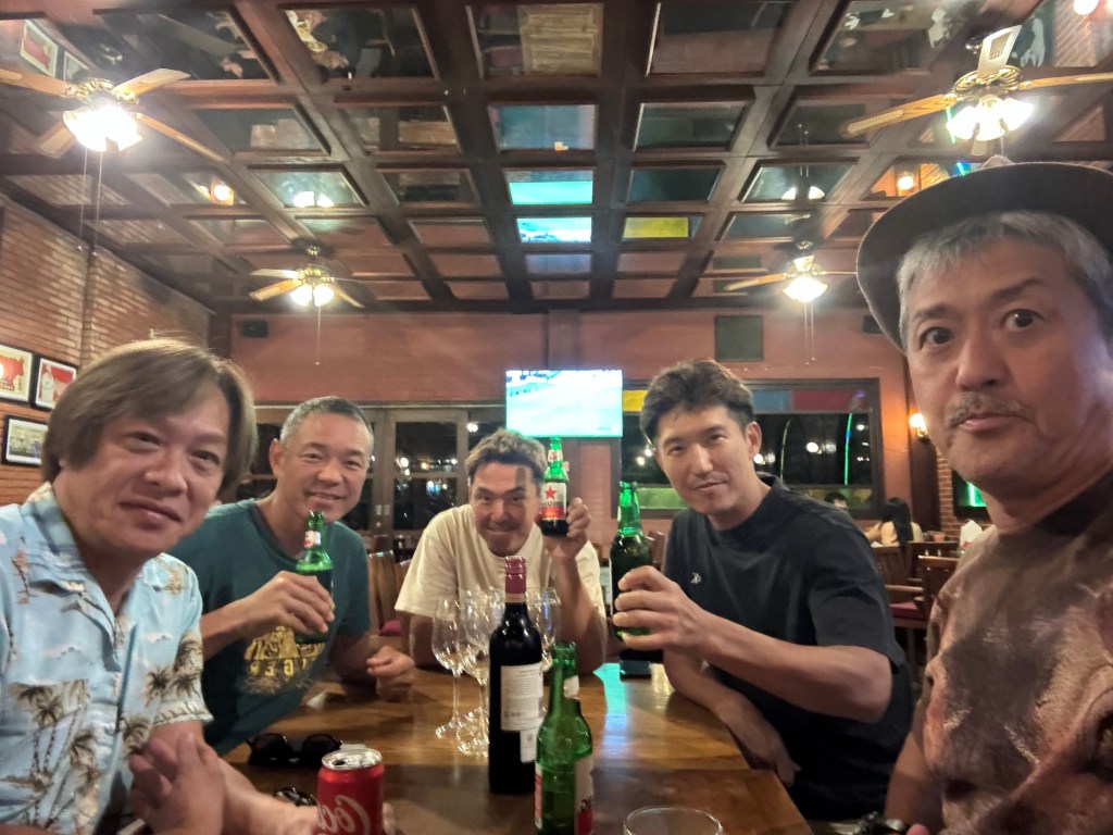 T-Gorira(略して、以後TG)は毛づくろいに出掛けてしまい3人での朝ビールでしばしのビーチタイム。毎年お世話になってるビーチバーFerryのオーナーも相変わらずに迎えてくれたが、ちょっと腹出たんちゃう?最近サーフィンやってないなあ!