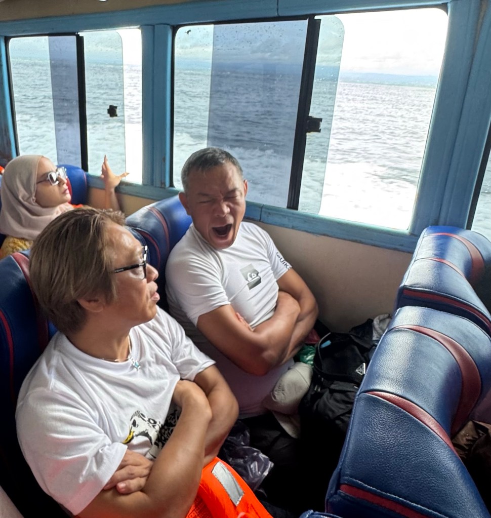 今日は、ぺニダ島へ渡り海遊びだが、あいにく昨夜から大雨。モーニングミィーティングで延期を検討されたが、バリは雨季に入っており、天候は、予測不能だから延期しても晴れる保証はない。ガイド、船も予約済みでキャンセルは、難しいというので、雨中の出発。