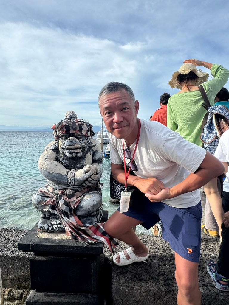 ガイドのWiさんは、気さくで日本語を話せる。送迎、船代、ランチ、シュノーケリング、島観光が付いて1人15000円。一般労働者の月給が30000円程だから、日本円に換算すると10万円くらいの現地価値になる。結構なお値段だ。バリでは、観光ガイドは、儲かる仕事。コロナで観光客が消えた時は、皆さん、田舎に引っ込み農業に戻って食い繋いだというから、観光発展したバリではちょっと勉強して日本語や英語を覚えた現地人がガイドになって儲けている感じだ。私が料理人からインバウンド景気で民泊経営者になったのに似ている。