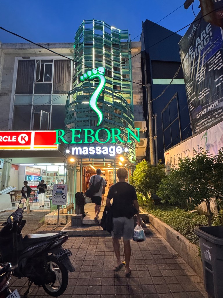 快適クルーズ経て、マッサージ屋さんは、毎度お世話になっているReborn。乗馬、ラフティング、荒波ライドでもう足腰は、限界を迎えている。いよいよ明日からのサーフィンに備えて身体のメンテナンス。