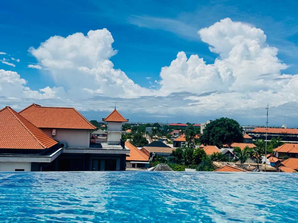 私達のバリの棲家は、ビーチから徒歩5分のここZest hotel。ここも3年連続泊。部屋は、普通のクイーンサイズベッドでシャワー、トイレ付きのワンルーム。おっさん一人は、これで充分。屋上のインフィニティプールがサーフィンの疲れを癒すのに最高!