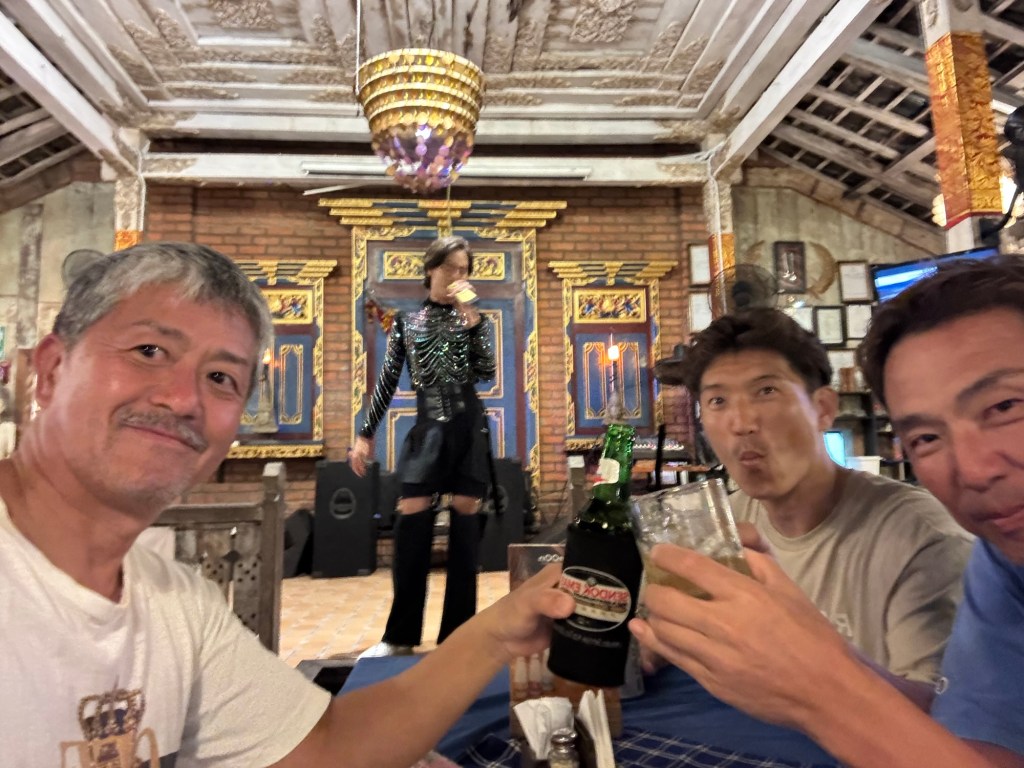 行きの狭い座席と違い、帰りは、ガイドにチップを握らせると2階席確保でビアパーティー。