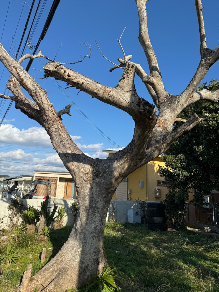 今日は、大阪からの頼もしい助っ人に庭の木を伐採してもらった。荒れ放題だった庭がだいぶすっきりとしてきた。