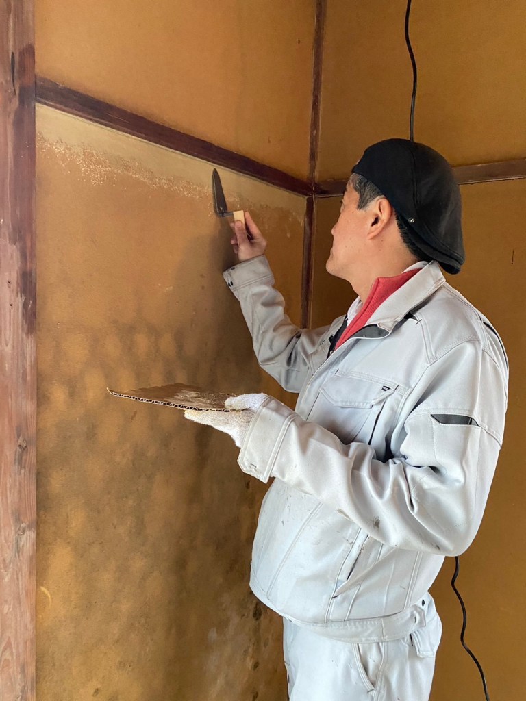 並行して、傷んだ壁の補助ついでに断熱材も仕込んでおいた。