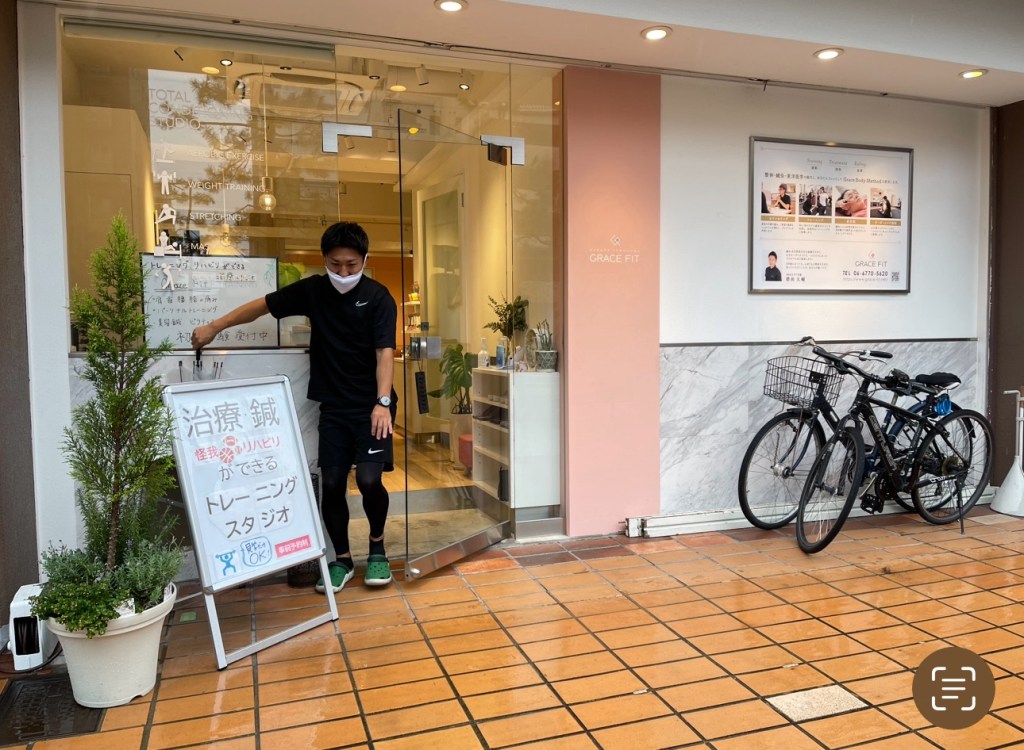 私が最近通っているのは、上本町にあるグレイスフィット、トレーニングと鍼灸整骨院の治療もできる清潔でおしゃれな施設だ。100歳まで丈夫な身体づくりを目指す院長増田先生は、いつも笑顔で的確なアドバイスをくれる。