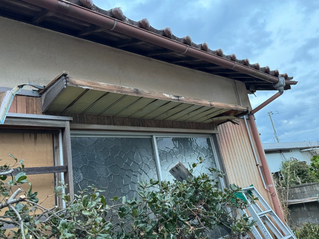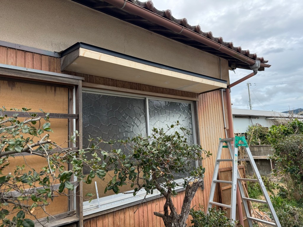今日は、この朽ちた庇の補修。