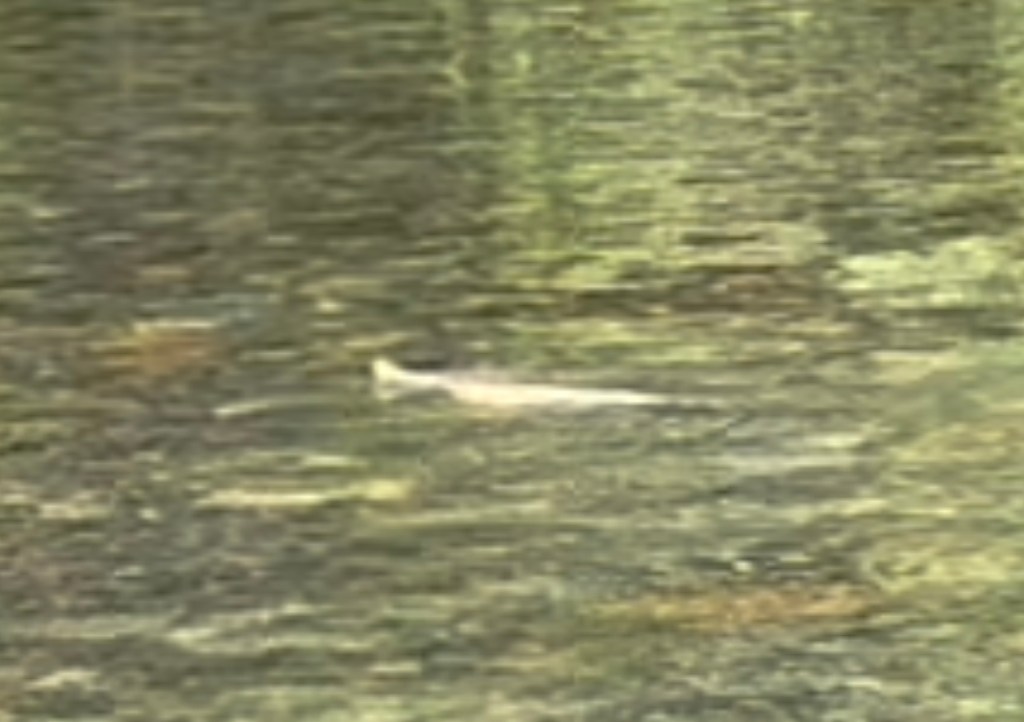 川中に枝のようなものがユラユラしている。ん?枝?にしては、動いてないかい!?