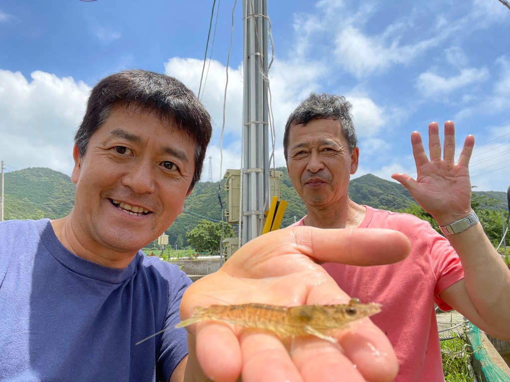 春に入れたわずか3ミリ程の稚海老2万尾がこんなに大きく成長している。
