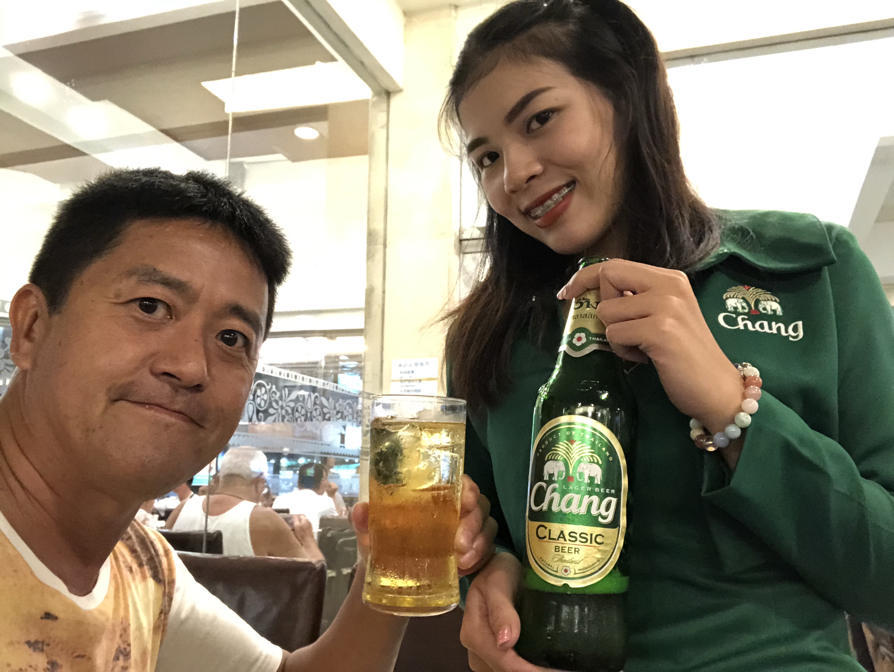 飲む気は無かったがChang Beerのキャンギャルの押し売りに負けて2ショット。